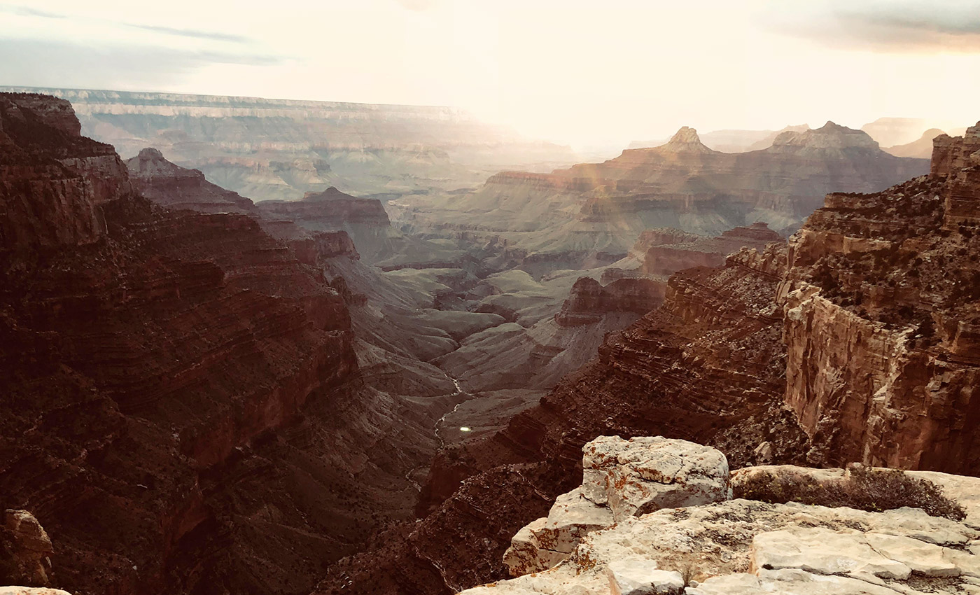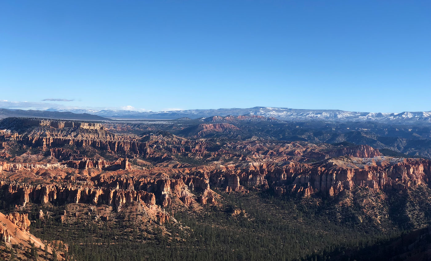 I decide to stop at Bryce Canyon to admire the “Hoodoos”, the famous pinnacles of multicoloured rock that will literally take your breath away. This phenomenon is due to the erosion of water and wind that has produced spiers and towers over thousands of years, grouped in amphitheatres that appear to have been chiselled by the hand of an artist. If Bryce Canyon is small and the eye can take it all in, the same cannot be said for the Grand Canyon, of which I find it difficult, if not impossible, to delimit the boundaries. I am always enraptured when faced with these sights and I would like to be able to share the awareness of the immenseness that surrounds us, with the whole world. Everything is even more spectacular because it starts to snow.