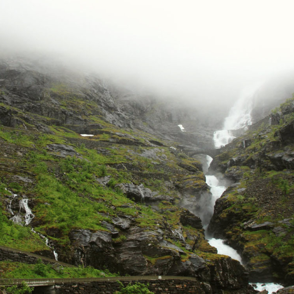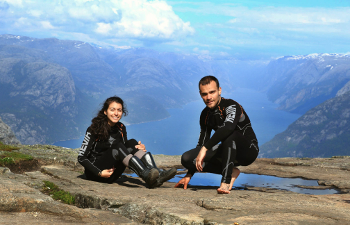 The Oresund Bridge, the world’s longest cable-stayed bridge leads us into the area of Malmo, Sweden, where we visit Uddevalla and Trollhättan before replacing Zuki’s chain. Then we see…Paradise: if paradise really does exist, then for us, it must be exactly like Norway! A truly beautiful country where free camping is essential! After Oslo, nature’s beauty surrounds us: greenery, lakes, mountains, creeks, waterfalls and even an endless glacier. We climb Pulpit Rock, a very high overhanging granite cliff. We continue heading North towards Bergen, a coastal city surrounded by mountains. We pass through Trollstigen, the Troll’s road and finally we enter the Arctic Circle. The road to Nordkapp is in the middle of thick forests and cold moors and proves to be a tough path. But at 1am, amidst a floodlit night, we arrive at our destination: North Cape.
