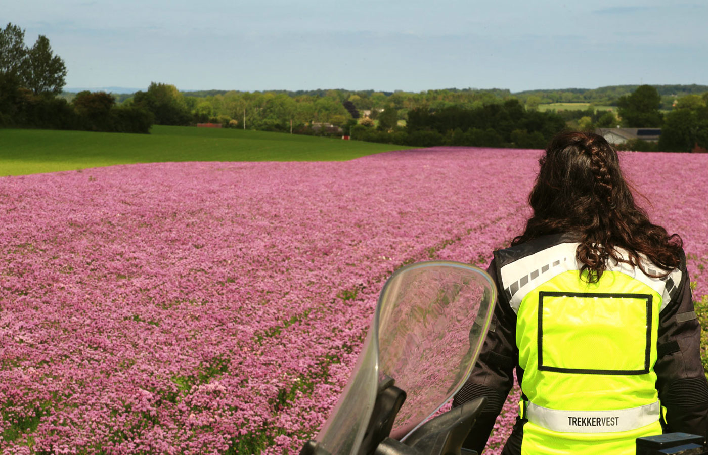 Jackie and Pisel travel safely wearing an X01 Tourer helmet and an X08 modular helmet and the high-visibility Trekker vest (vest01). They cannot travel without their First Aid kit. To face the darkness, the bike is equipped with additional S320 LED spotlights and for any unexpected punctures, there is the Tyre Repair kit. By way of luggage, they have the Trekker 46ltr side cases (with 46 ltr capacity) and an XS308 tanklock bag with the compatible tank ring fitting, plus as additional rear rack.
