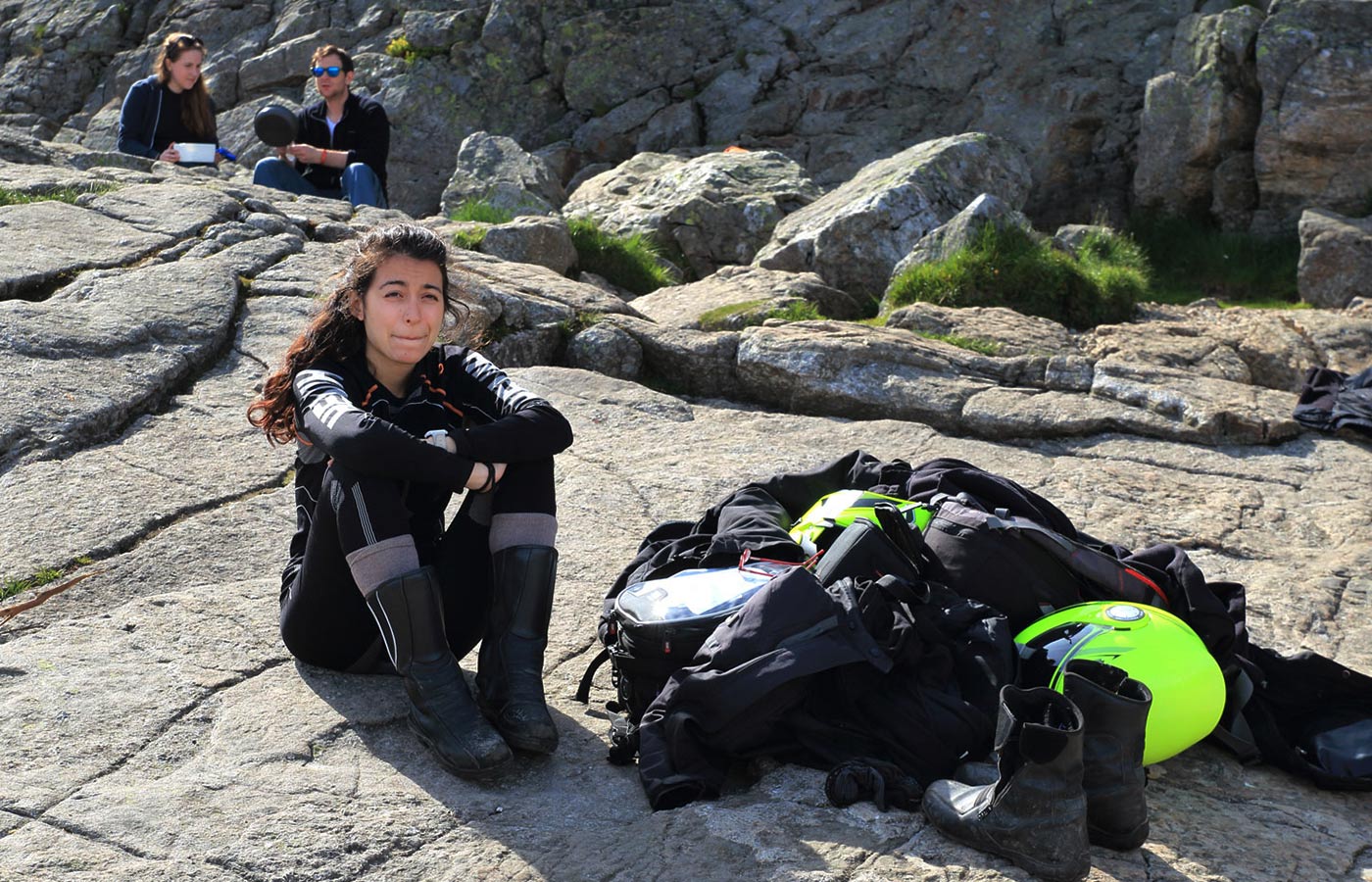 Young couple who dream to travel the World free and without agenda. One motorbike, a Suzuki V-Strom 650, equipped with Givi accessories and one destination that seems far away but becomes increasingly closer: Nord Cape.