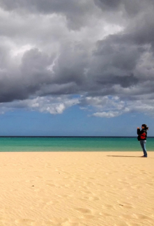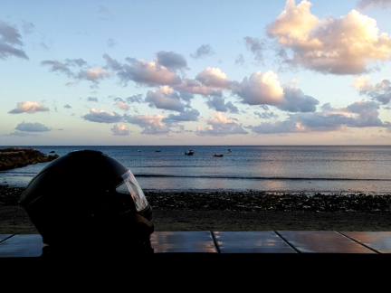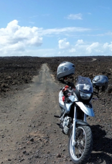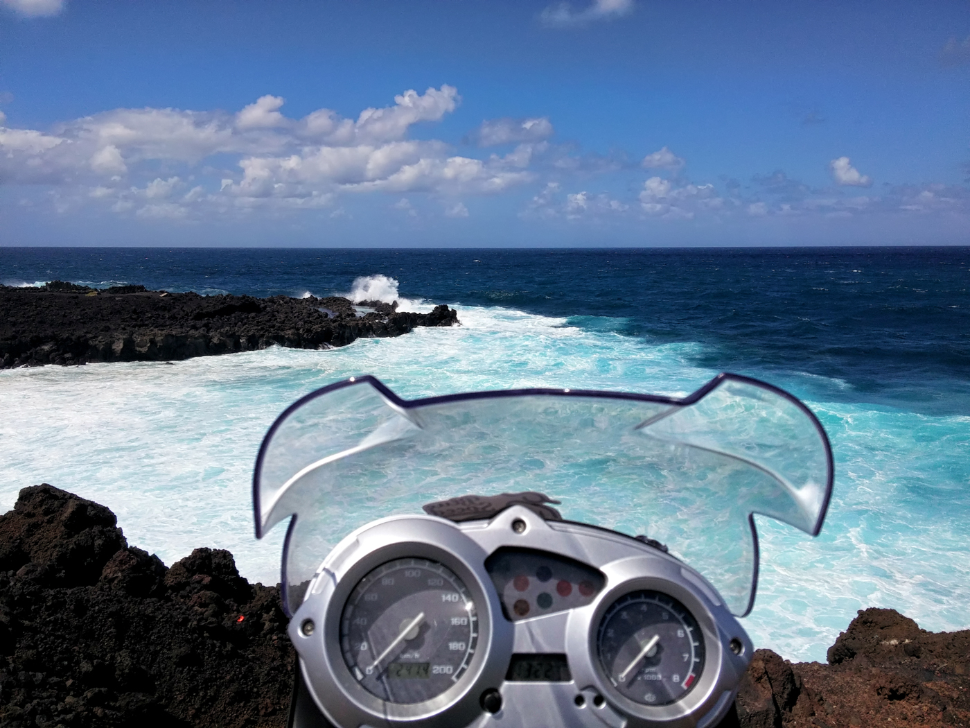 The rubble is becoming bigger and bigger, the back of the motorbike is moving from side to side, while the front is throwing up stones against the skid plate. I put my foot down until I reach the top. The surface is compact, so I relax and enjoy the landscape characterized by white beaches and surfers, which are ever-present on this island. Awe-inspiring!This side of the island is the most touristy and indistinctive with terraced buildings, palm-lined avenues and high street stores. We leave the city and in the rear view mirrors I can still see the huge cruise ships moored in the harbour. Ahead of me, there is nothing and almost immediately the road is unpaved. The wind begins to blow more forcefully, but we do not give up!