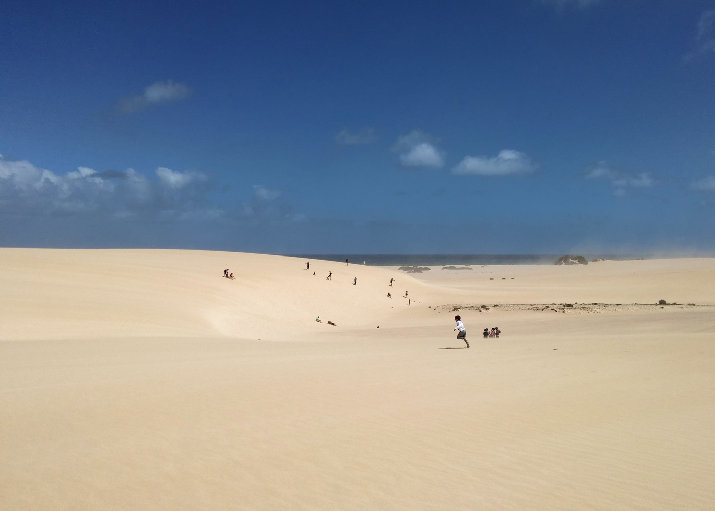 Along the way the wind is against us, strong and constant. I try to lean forward to ride as upright as possible and in response, the wind slaps my helmet and kicks the bike! I cannot ride in a straight line, twisting from left to right, but I hold on, as I need to reach the ferry and leave this island. When we are almost at Corralejo I start thinking I have made it, I am obviously that naïve as I feel like Ulysses fighting to return to Ithaca.