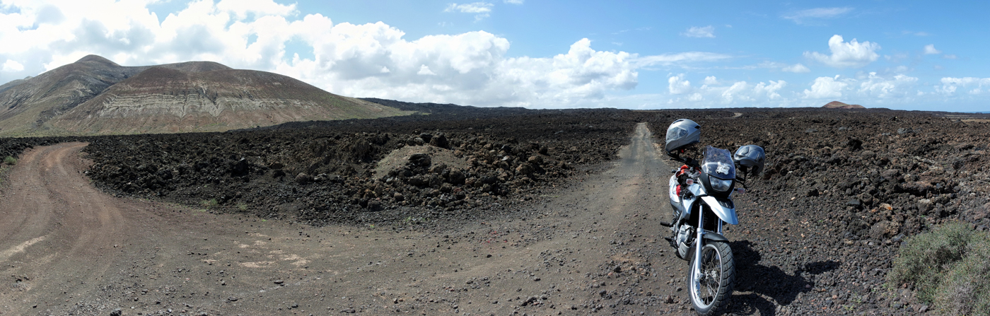 On March 19, Nina and I leave from Rome for our journey to Lanzarote, an island named after the Italian navigator Lanzarotto Malocello. Right outside the airport, a great single-cylinder BMW F650GS is waiting for us. It has been delivered by Blue Speed. We quickly go through all the practicalities then we load up our motorcycle and we hit the road heading for Yaiza.Lanzarote greets us with a sunset of indescribable colours and unfortunately, the fading light does not allow us to see much more, but one thing does catch our eye: the roads, which are paved as well as those around Mugello! Perhaps they are surfaced by the same company. The asphalt is perfect! With no maps, no GPS, and no wrong turns, we arrive at the B&B we have booked in Yaiza and the journey only took us 10 minutes! Ok, I get it, on this island you cannot get lost, even if you want to!