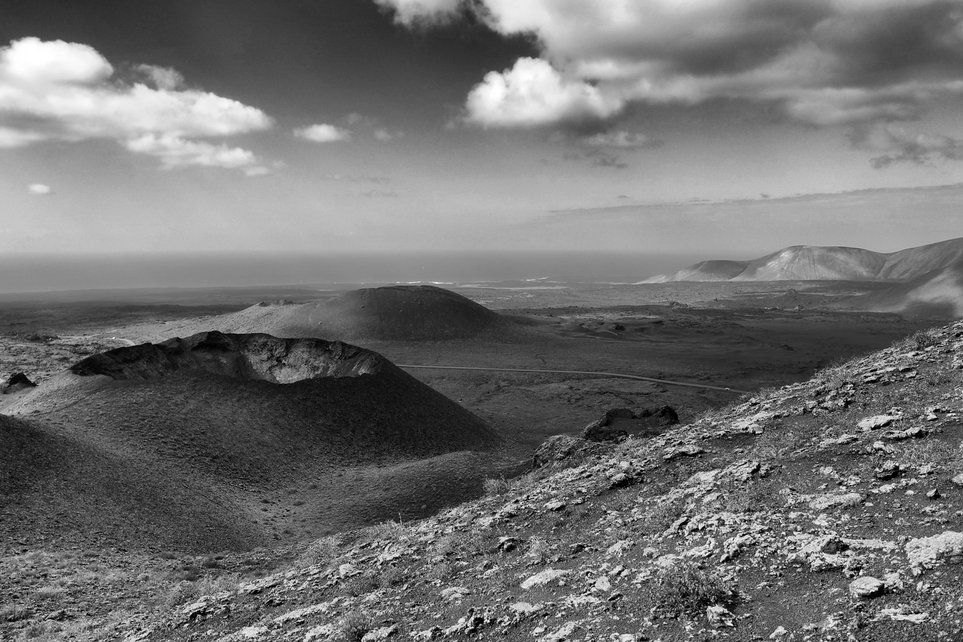 On the road we find the Jardin de Cactus, a kind of botanical garden with more than 1400 succulents, some being a few metres tall. This place, like others on the island, were created by César Manrique, an architect, ecologist and artist born in Lanzarote. Driven by love for his island, he tried to improve its value without ever distorting or exploiting it. Manrique created all the sculptures, transient or permanent, which are on the island, the Restaurant of the Devil on Timanfaya, the aforementioned Jardin de Cactus, in short, if Lanzarote is this wonderful, it is largely thanks to César Manrique and that is definitely worth mentioning!While we sip a couple of beers, enjoying the shade of the bar, I hear a voice, a kind of a call, but I cannot understand what is being said. The voice gets louder, clearer, I recognize it! It is Hephaestus calling me. I jump on the bike and again I find myself back on the eruption sites, but this time I change the area and go to a smaller mountain that offers a spectacle to behold.La Montaña del Cuervo shows another side of the eruption, the explosive one, in fact the mountain itself bears the signs of the explosion. Thank you Hephaestos for guiding me to this place!