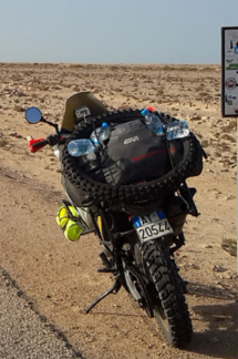 In a journey such as this, you should give priority to the transport of spare parts and tools (see previous list), leaving behind all that is normally chosen to improve comfort or to hold helmets, jackets, etc. The need for weight reduction, due to the ground of the Mauro desert, prevailed over other possible choices. That’s why Giorgio chose to take only the 80 ltr WP bag (thoroughly tested on previous trips), attached to the rear saddle: Inside, it contained a second 30 litre GIVI soft bag that can be converted into a backpack and which contained Giorgio’s personal belongings (shoes, beauty-cases, clothes, etc.).