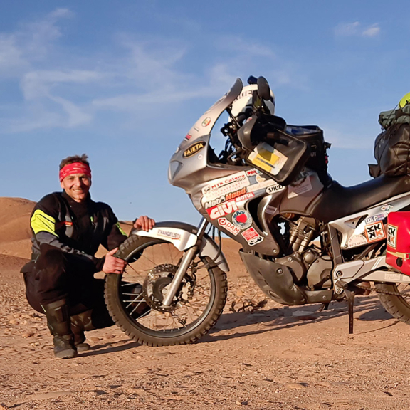 In just 3 months I managed to fundraise via crowdfunding and help from technical sponsors to buy the motorcycle, with valuable support from the Mayor and council in my city, Montesilvano, which made it possible to donate to the Dakar doctor a marvellous Honda XL650V Transalp from 2006, which I renamed “FESH FESH”