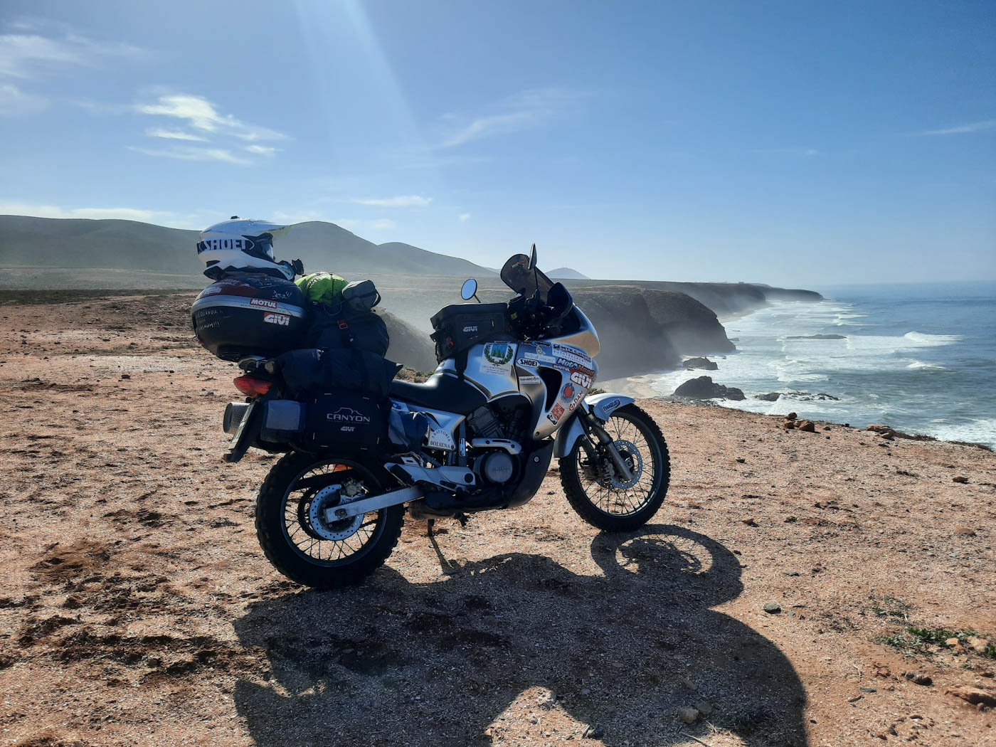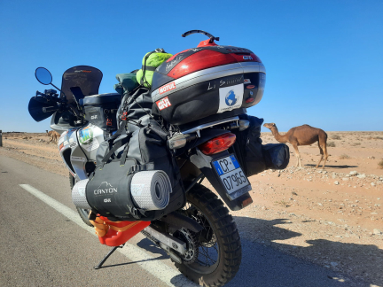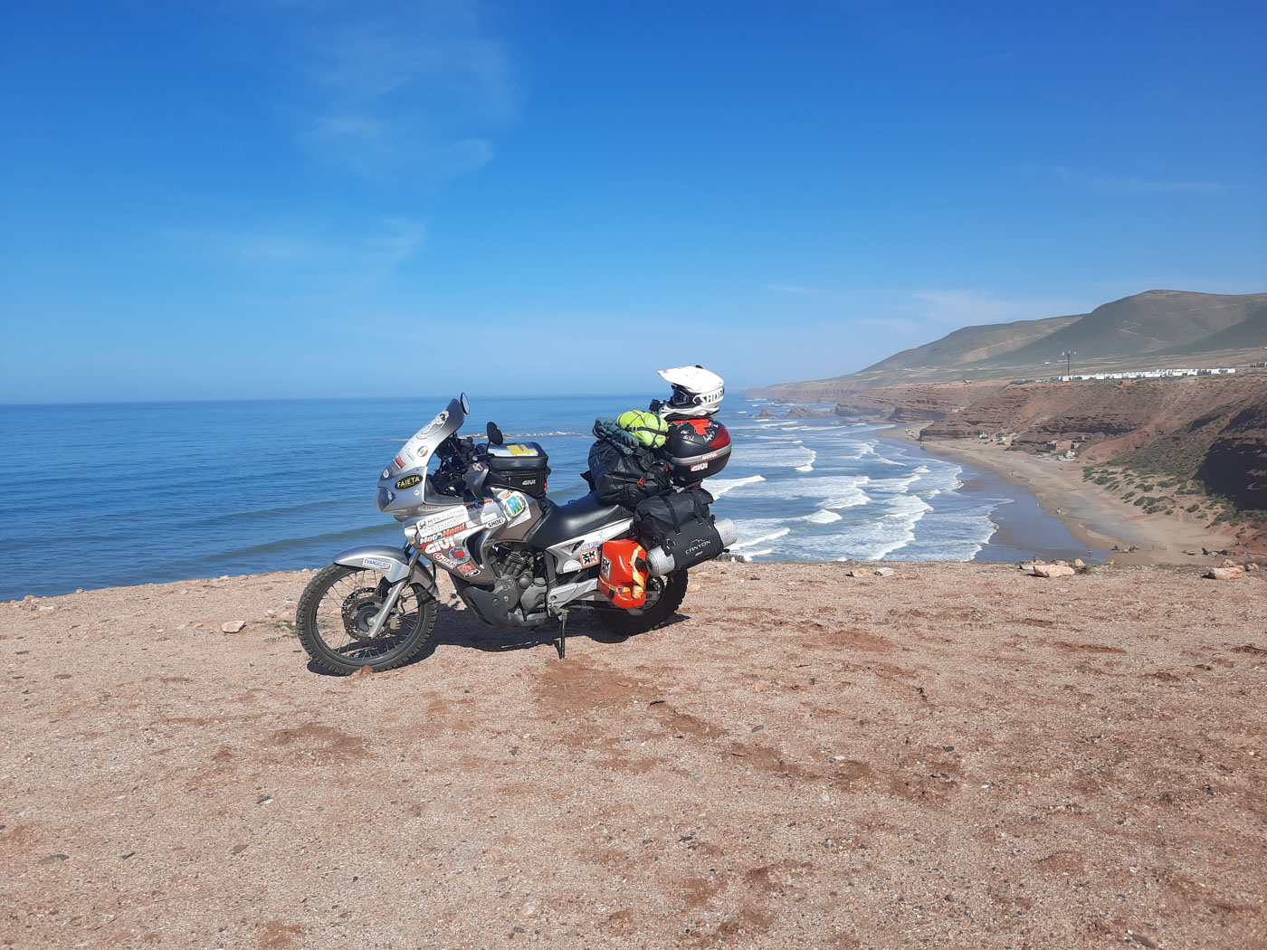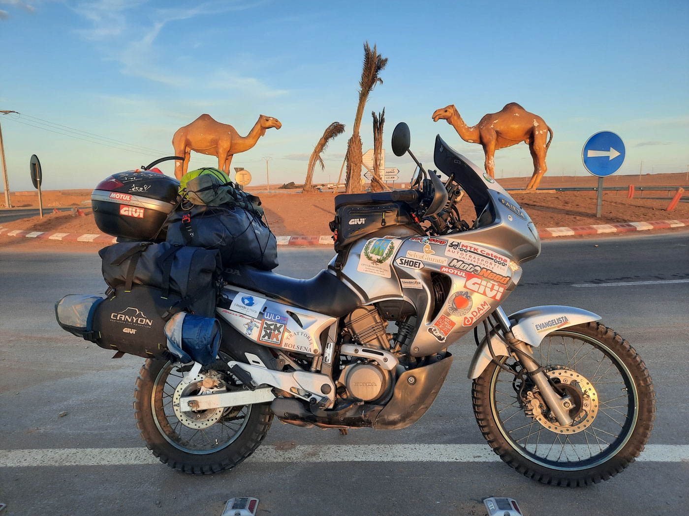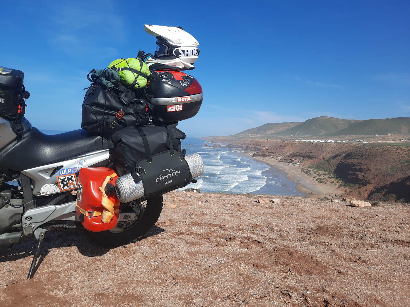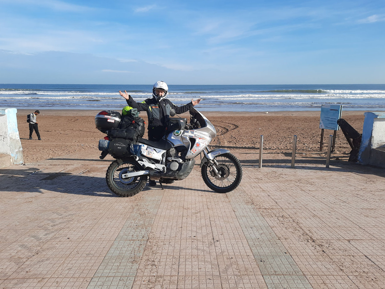 I started out early from Tangier and set myself a daily leg of 450 km towards El Jadida, making brief stops in Kenitra, Rabat and Casablanca. In Casablanca I met Cian, an Englishman in the saddle of a BMW G 310 GS, also kitted out to the max with CANYON bags by GIVI. He was more or less following the same route as me, but to Sierra Leone.