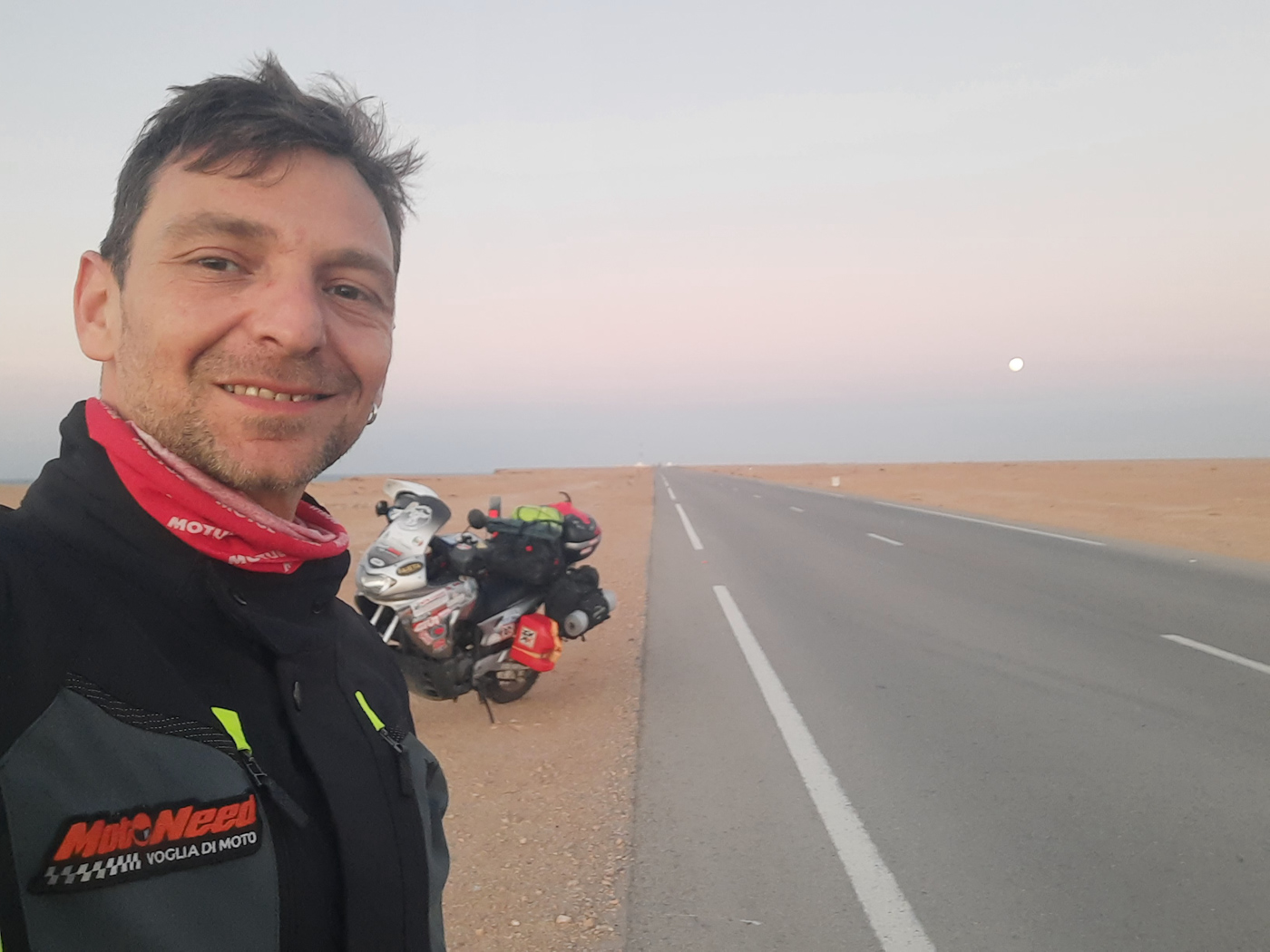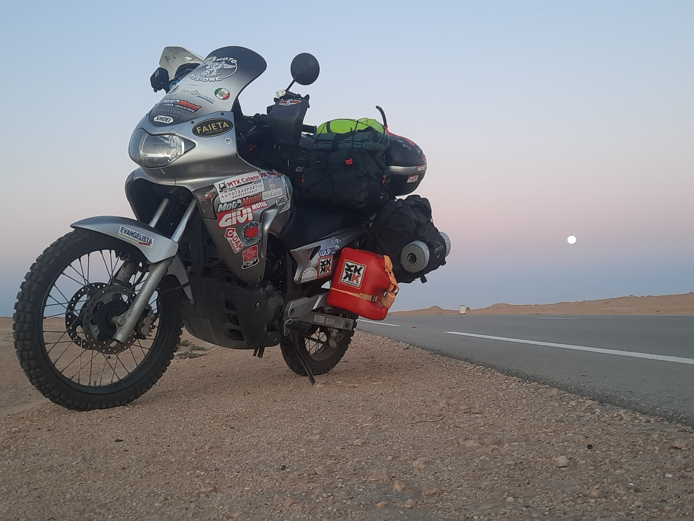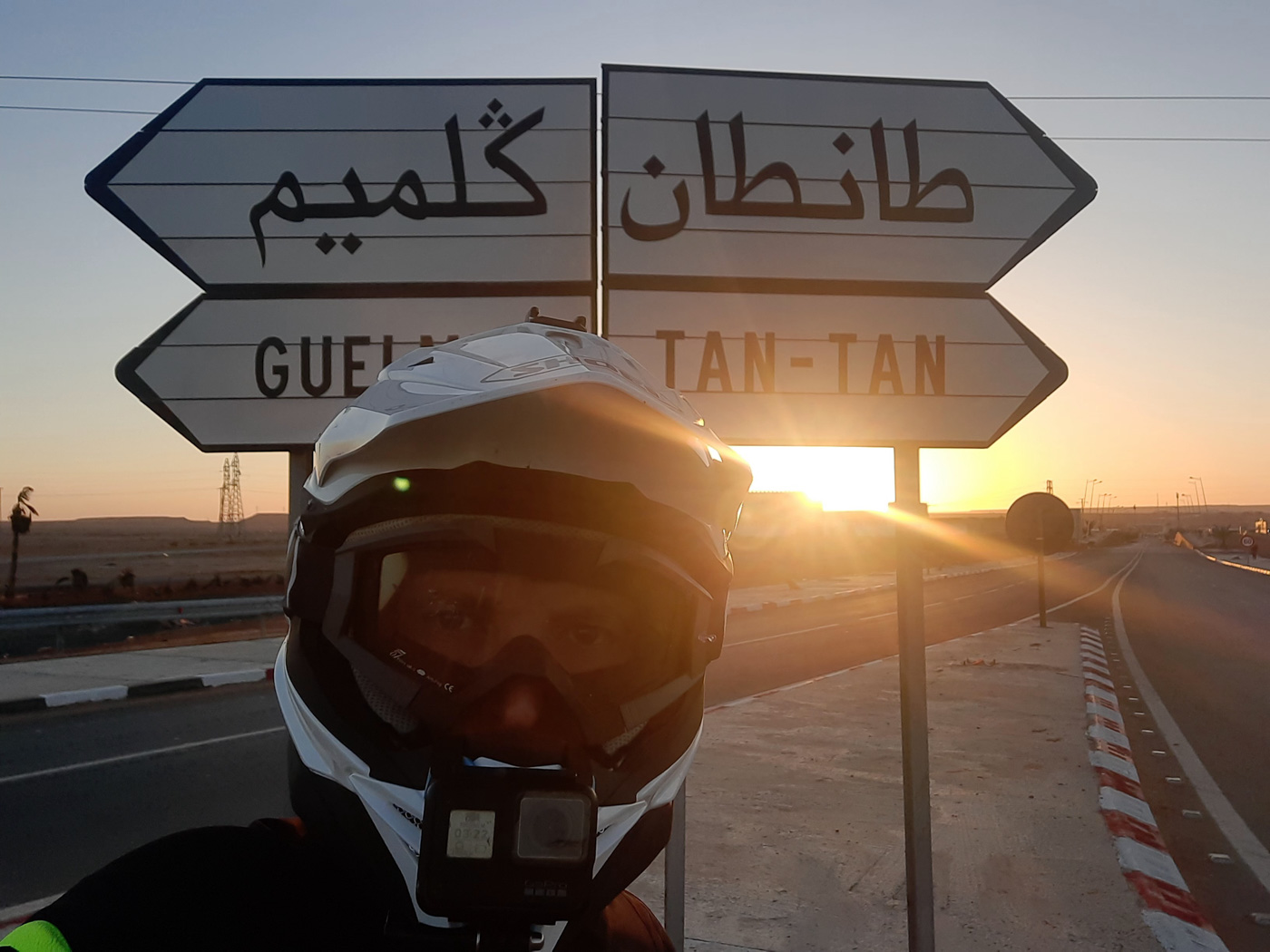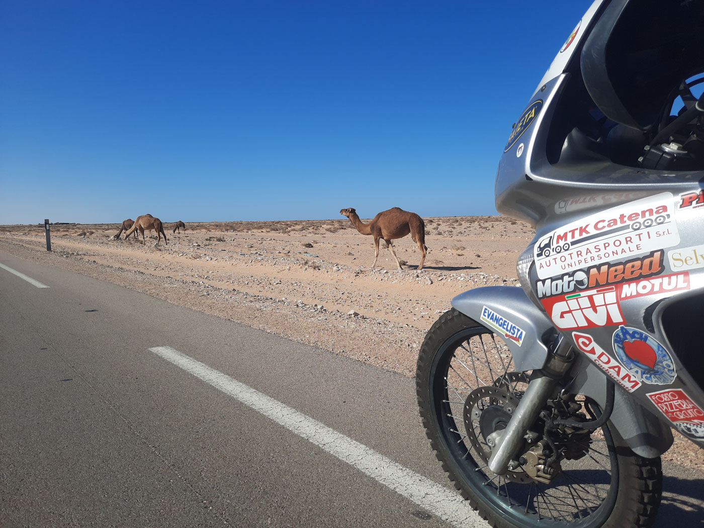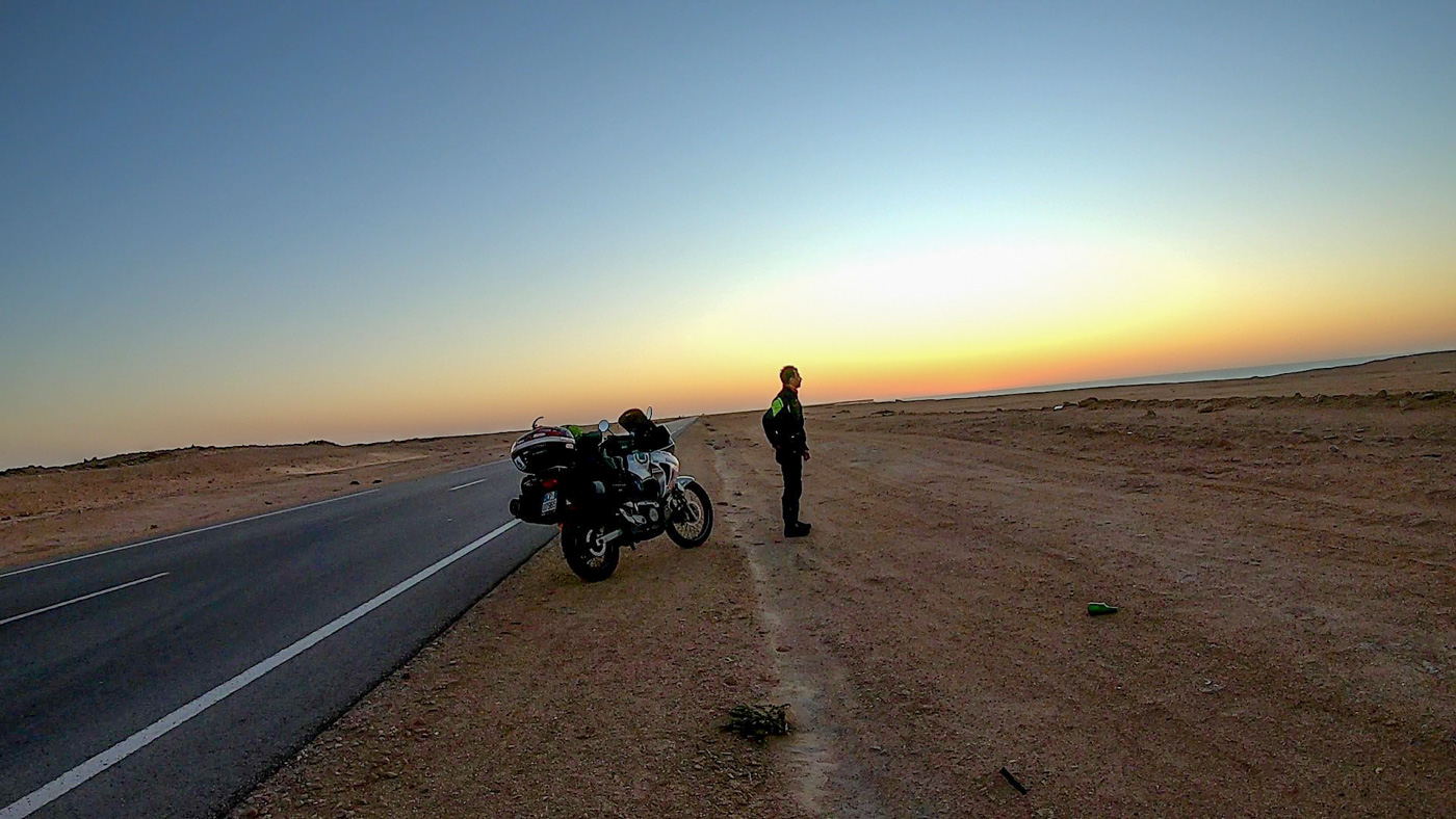 On 4 January I left brimming with enthusiasm and renewed energy for Tan-Tan, a slightly shorter leg of 330 km. I was extremely excited to officially enter the Sahara, with my entry marked by the sign for the city of Guelmim, the Gateway to the Desert. On the way I kept in touch with Cian, the man I met in Casablanca who had told me that he was also stopping for a night in Tan-Tan, and the next day we set off together, around lunchtime, and began to cross Western Sahara; kilometre after kilometre, we left the built-up areas behind and the landscape become more and more desert-like. Around 8 p.m. we reached the city of El Aaiún, where we spent the night.On 6 January, another tough leg of 550 km towards Dakhla. I started off again with my new friend but we each had our own pace and it was a solitary journey. Here the geographic area was even more desert-like and petrol stations were further and further apart, but this was where I started to realise I was living out my adventure. I reunited with Cian in Dakhla, where I decided to stay for two days to recoup.