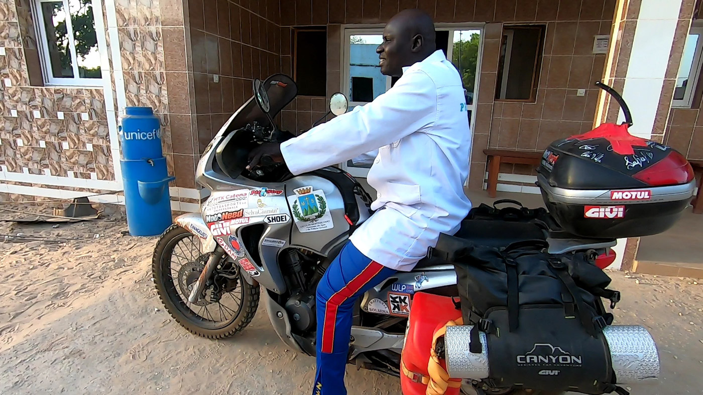 I wanted to leave a mark on this journey, to give it a mission for the benefit of the people I was going to meet. So I decided that the aim of my journey would be to donate the motorcycle used in the adventure to a village doctor in Dakar, in the district of Toubakouta, for a medical centre managed by the NGO Bambini nel Deserto (Children in the Desert, or BND).