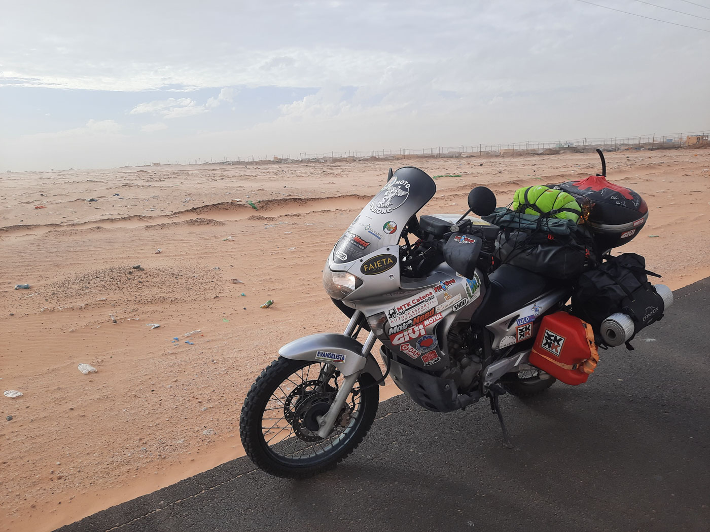 I set out alone on 7 January, got up very early and prepared my motorcycle in a rush, because today was the most important, difficult and adventure-filled leg of the journey! Leaving Morocco went without a hitch and once I was over the border, I entered No Man’s Land, around 3 km of dirt track that led to MAURITANIA and to the stop in the next town, Nouadhibou.
