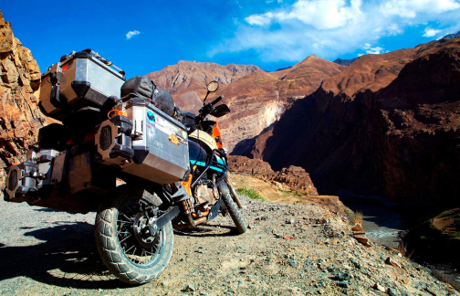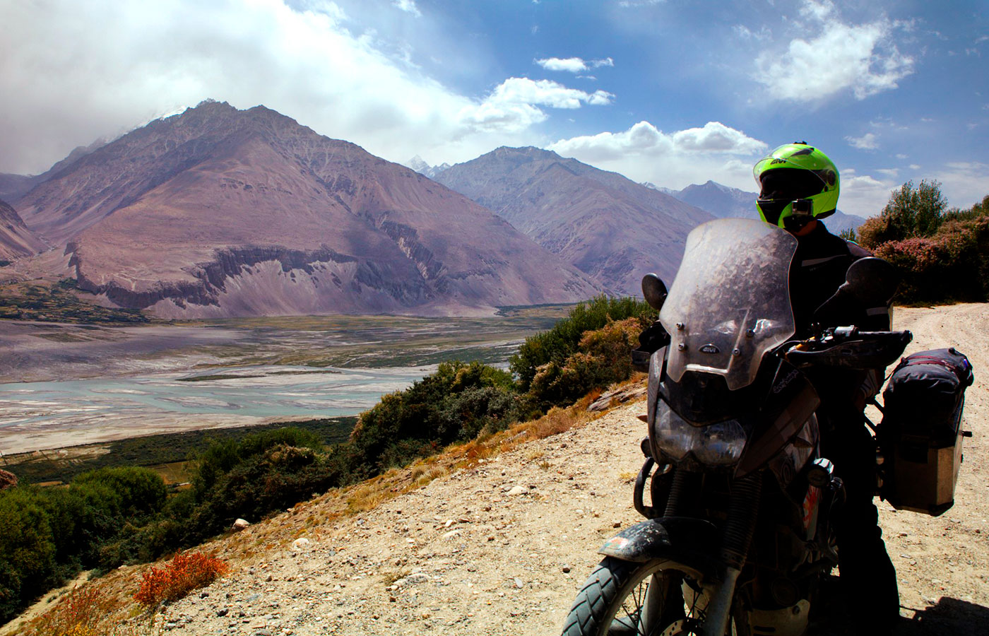 After the last sunset in Uzbekistan, a new day begins in Tajikistan. In the saddle of our motorcycles we cover many kilometers raising kilos of dust. We ride along a road that flows like a river in the middle of rocky canyons. At one point, we are literally surrounded by Tagiki people of all ages who are cheering for us. At the border, we realize that my back rim is bent, so we straighten it a bit. At 11pm we arrive at Dushanbe where for just $6 we sleep in a hostel, on a stack of rugs. The next day we head to the shop to replace the rim, repair the tube, lubricate the chain and replace a bolt we lost along the way. We then get back on the road and stop at Kulob and then, in 2 stages, reach Khorog.