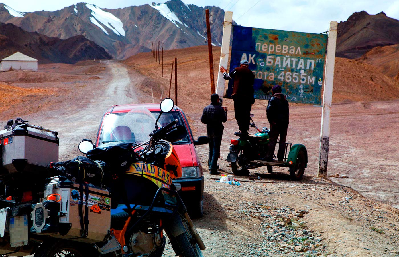 We only get a sleep little at the Pamir Lodge, the most famous hostel in the city, because during the night it gets cold, and in the morning we run to the nearest thermal spring to tray and warm ourselves up. Recharged and excited, we continue our trip on rock and sandy trails, towards Ishkashim. We arrive at Langar and, from the vantage point at high altitude, we can see the Afghan mountains stretching almost all the way to Pakistan: a breath-taking view! We conquer the highest pass of the Pamir at more than 4,600 m and reach the Karakul Salt Lake. A cold windy night, in a drafty yurta, makes us appreciate the 20 kg heavy blankets!
