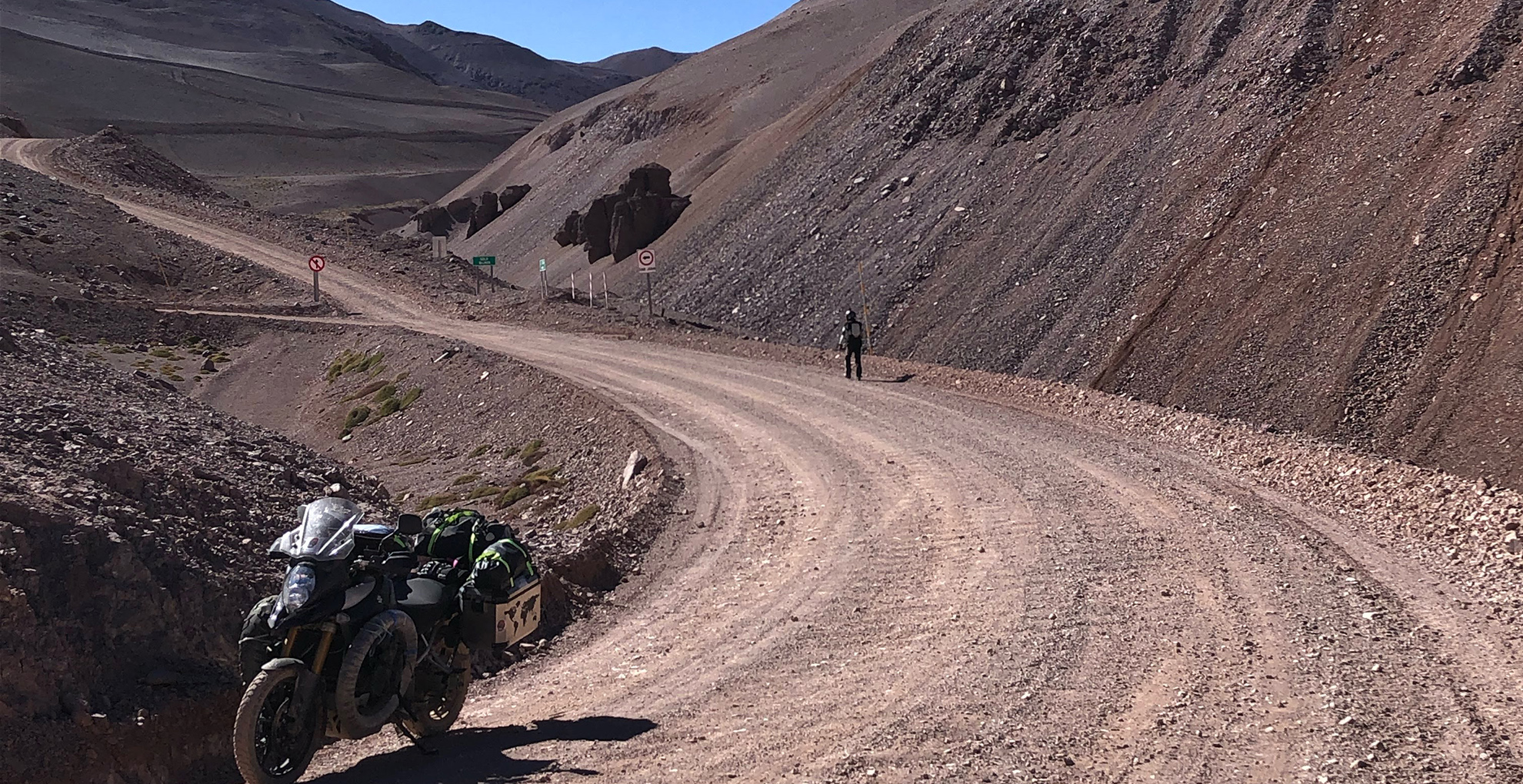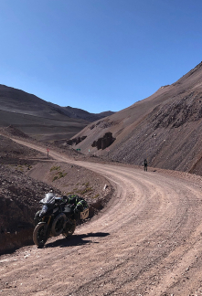 We decided not to stay in the chaos of Santiago, but stopped in La Serena over the next few days. While there, we couldn’t pass up the opportunity to try out the legendary Agua Negra Pass: around 60 km of dirt road, with a multitude of colours and a spectacular lagoon at an altitude of over 3,000 metres (the pass itself is at 4,783 metres). Back in the city, we found a replacement rear tyre for the motorcycle and, carrying on, made it to Antofagasta and then San Pedro de Atacama.