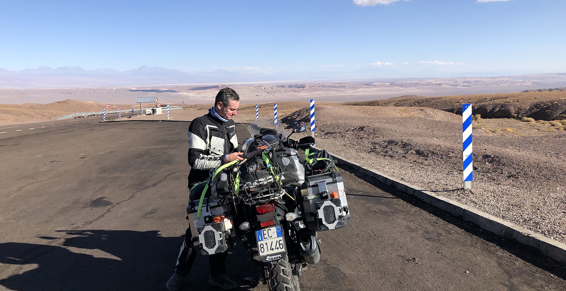 Those days of travelling were brutal: with everything closed, we found shelter where we could at night and ate lunch at supermarkets. We spent a week shut up in a hotel where we were the only guests, eating takeaway pizza every day, constantly on the phone trying to organise a way back for the motorcycle and for ourselves… To this day, three and a half years later, we are still waiting on an answer from the Ministry of Foreign Affairs! Finally, we were able to bring the motorcycle to customs and send it back using the same courier as we had on the way there. Our own route was: Santiago-Madrid, Madrid-Paris, Paris-Rome, and a train to Salsomaggiore Terme. As soon as we’d boarded the first of our flights, we made a promise that we’d be back to finish the part that was cut short, and — why not? — to go even further.