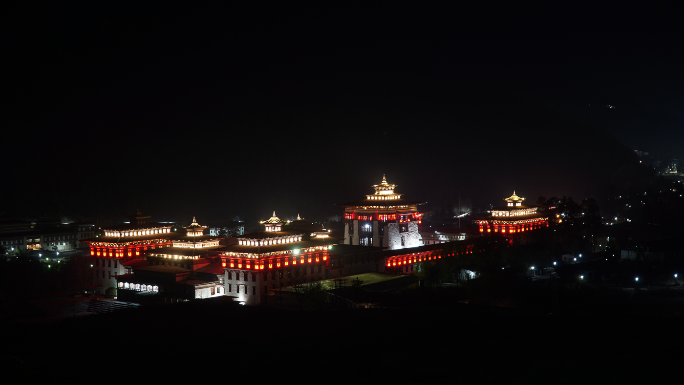 In the evening we went back to Thimphu, where we stayed next to a beautifully illuminated golden stupa.