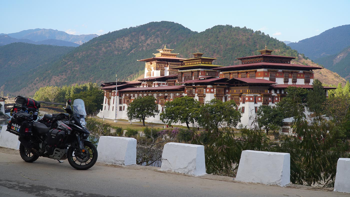 Reading more and more about Bhutan and the culture made us very curious about the country. We debated long whether we should spend so much money for a few days. In the end we decided to enter the country but only if it was possible with our Suzuki V-Strom. The decision was one of the more spontaneous ones so we started writing to agencies just a few weeks in advance if it was possible to enter with our own vehicle. Sonam from A Bucket List Adventure answered immediately and told us, yes, it would be possible. He could organize a permit for us. After sending him all the documents and paid for our stay (he didn`t charge any extra costs for getting the permit for us) we were ready to enter the country.