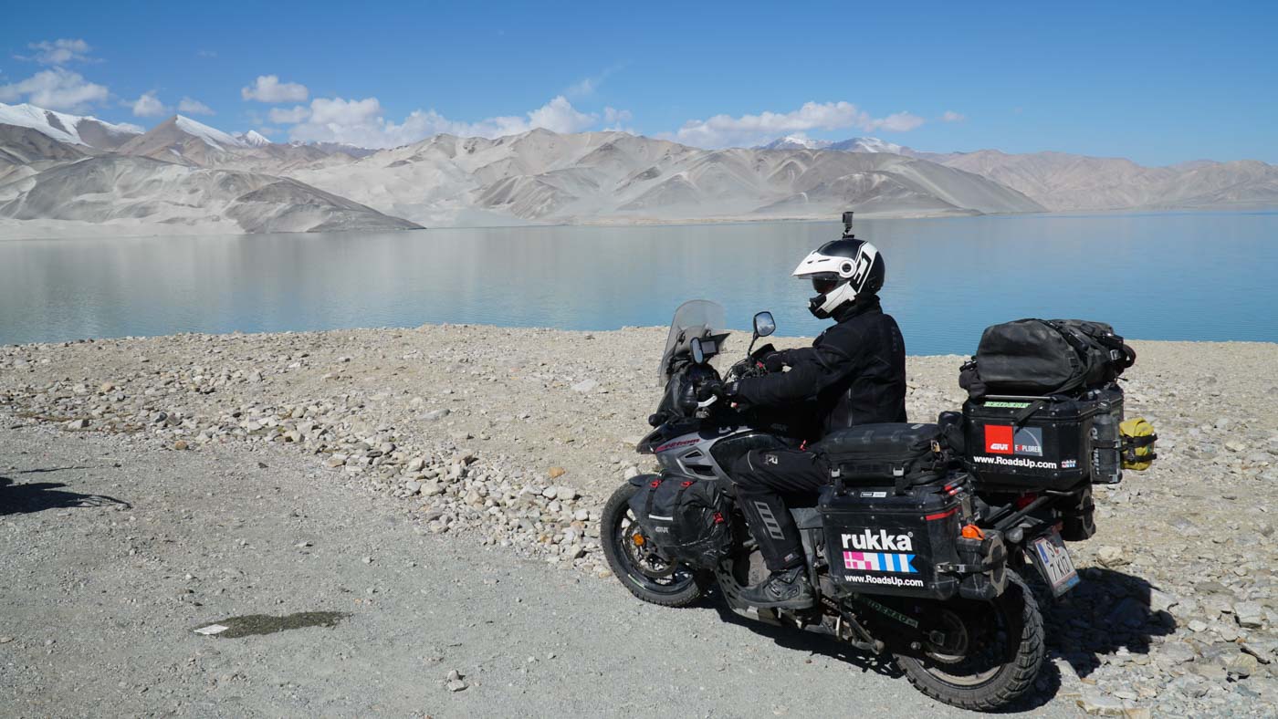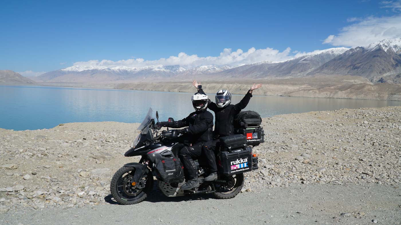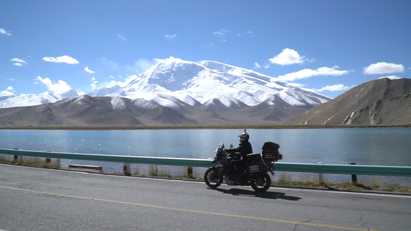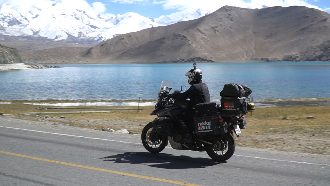 The gate opened and the Chinese officials directed us to come inside. On the Chinese side a man came towards us and told us smiling:“Hello, nice to meet you, I am Abdul, your guide. Just follow me with the bike”. We went many kilometers through no man`s land until we came to a big building. Abdul told us to remove the soft bags from the bike as they were going to be scanned. Furthermore we had to go inside the building for the passport control. With the bags we went inside and waited for them to be x-rayed. Meanwhile they asked us to give them our unlocked phones and walked away with them. Once our bags were finished we took them and went to the next desk where they were just looking at all the photos and videos on our phones. It was an awkward feeling watching strange people looking through our private stuff. They even installed a special spy software to watch every step we take. Goodbye privacy, we thought. Later our motorcycle was x-rayed in a special room that looked like a huge carwash tunnel able to fit about five big trucks.
