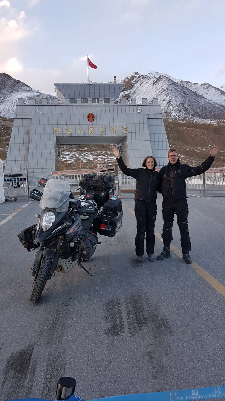 Standing at the Chinese border gate at over 3000 meters and enjoying the fantastic view we realized how far we already got with the motorbike.