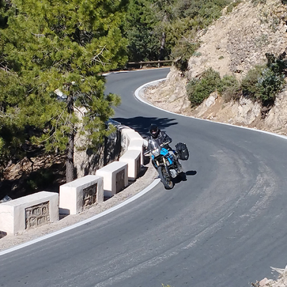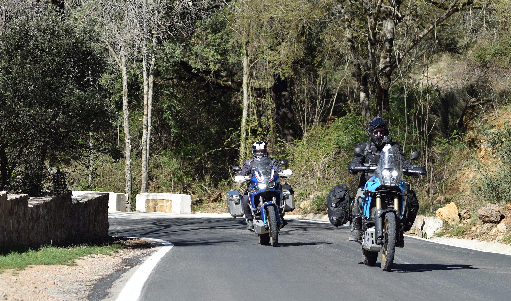 The Sierra Nevada treated us to spectacular roads looping through valleys and forests where opening the throttle is absolutely irresistible. After the Sierra Nevada, we took just a moment to get our breath back before entering the Cazorla area and the nature park of the same name. The road was extremely narrow but none the less inviting for that, and our enjoyment was at its greatest while coasting the great body of water of the Guadalquivir River. Inside the forest you feel like you’re in a video game: once you get into the swing of things, you’ll find one curve after another slipping beneath your wheels in a blur. Leaving Andalusia behind to enter the region of Castiglia-Mancia, after many kilometres of intensive olive groves reaching as far as the eye could see, we arrived at the Calares del Mundo Nature Park. We stopped here to take a break and a few photos, before tackling the final kilometres of fun and reaching Riópar in the late afternoon.