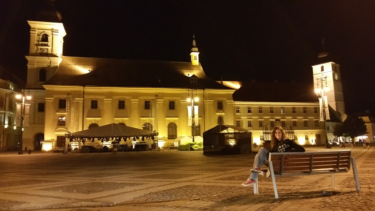 Between the two passes (don’t think it’s like in Canazei between Sella and Pordoi, here there are over 100kms of plains) we stop at Sibiu and confirm the advice received from friends and Lonely Planet. The city centre is nice and even if it’s dark we find a way to take a nice picture as a memento.