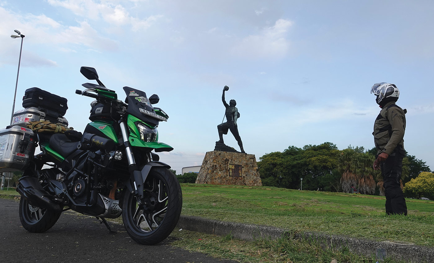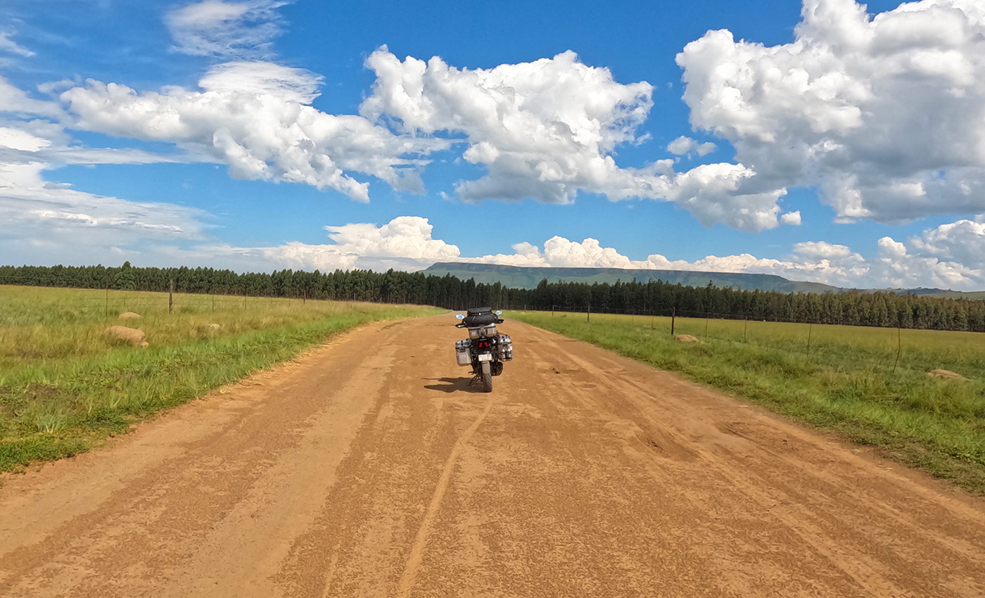 Leaving Johannesburg, somewhere along the road, I missed a turn and the route took me through one of the roads that I dreaded at each step. I had to ride through over 100 kms of gravel, compacted mud, and broken roads. To make the experience even more nightmarish, it started to pour. I was hoping that it was not pouring on my route as there is NO WAY that my load and tyres will hold that terrain…. Thankfully, the rains were on the other side and where it was actually pouring, it was on compacted non-slippery gravel. The bike and suspensions managed it pretty well and I was out on the tarmac heading off to Richards Bay. This will be my last night as I head out of South Africa into Mozambique.