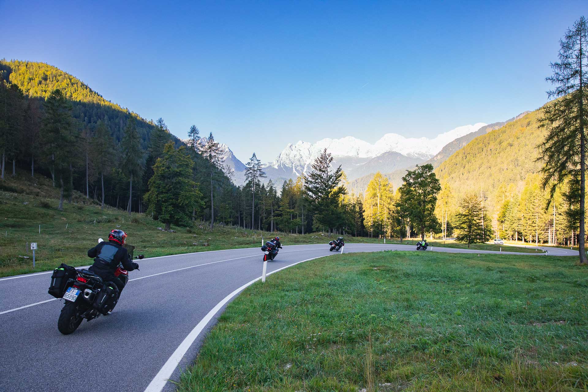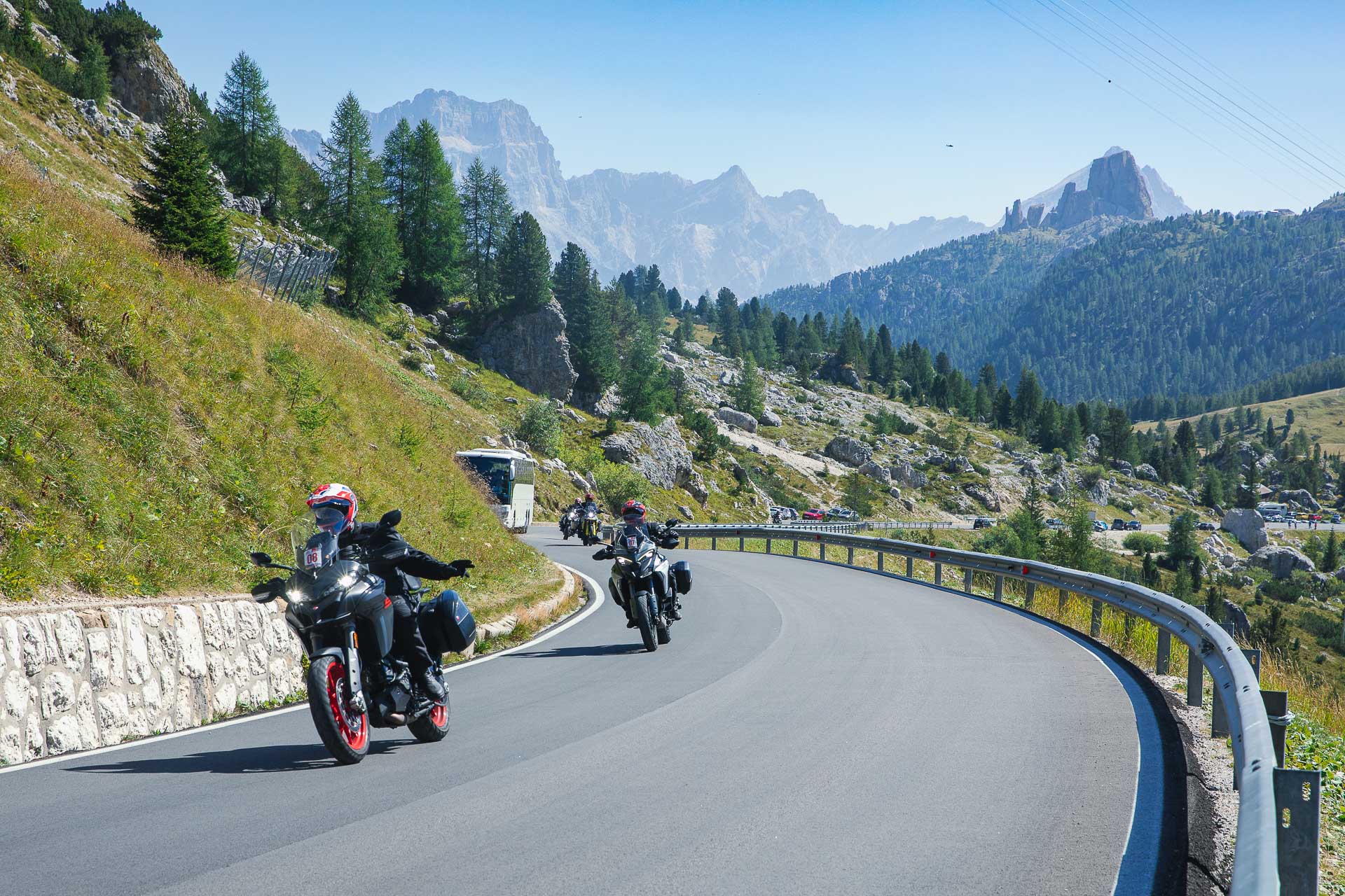 In fact, the itinerary for the new GIVI Adventure crossed the Dolomites, passing through some of the most idyllic places this UNESCO world heritage site has to offer. The journey begun on 9 September 2023, from GIVI’s main headquarters in Flero, and saw explorers take on the iconic Stelvio Pass, a real must for lovers of two-wheeled travel. The itinerary then continued through many stunning locations, like the Giovo Pass, Lake Misurina, Cortina d’Ampezzo, the Giau Pass, Canazei, Riva del Garda and Livigno, to name just a few. The adventure came to an end on 15 September, when the entire party of 35 motorcycles returned to GIVI HQ.