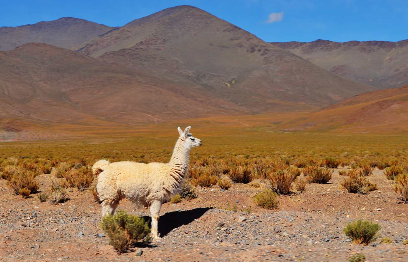 Heading towards the province of Jujuy, the whole following morning we cross a huge plateau: white and brown lamas graze in the pastures, we have fun taking pictures and chasing them.