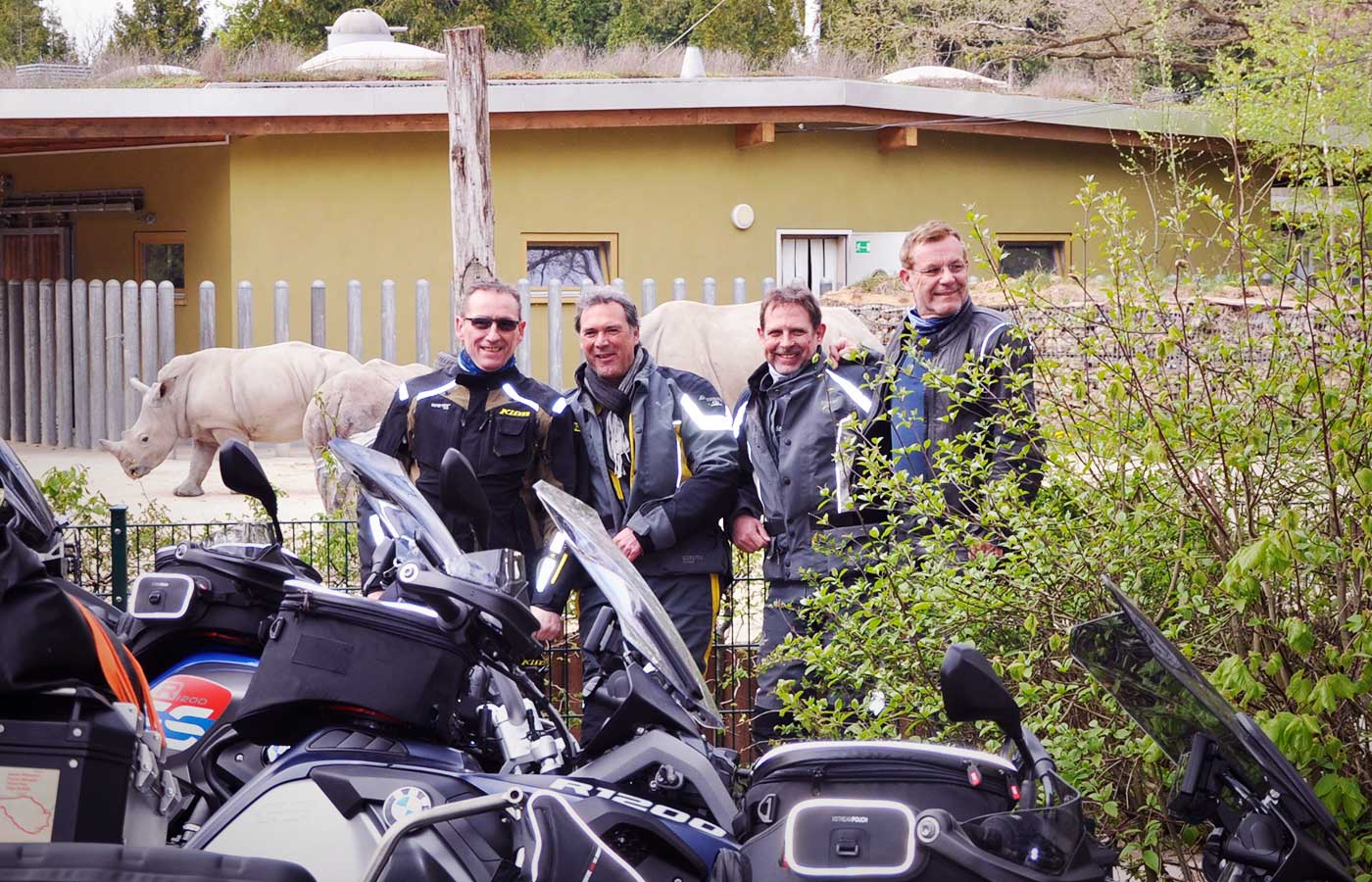 On the 15th April, after having breakfast together at the Gasthof zur Post in Haar, we leave from Munich but only after greeting the rhinos at Hellabrun Zoo, the oldest geo-zoo in the world. We are fully charged; in our luggage is all the warmth and energy that was given to us by our 50 friends and relatives during our leaving party. We’ve been meaning to take this trip for a very long time and we’re hungry for the road. In one day, we “eat” 800km of asphalt. We pass the German borders and cross Austria in a straight line. With a stop in Vienna and other brief stops to promote the Rhino Ride project, we continue to ride to the next border.