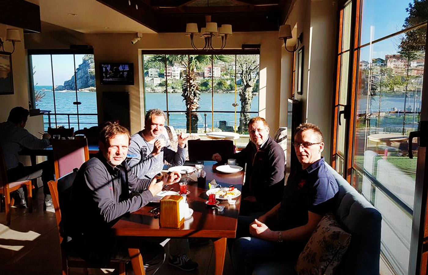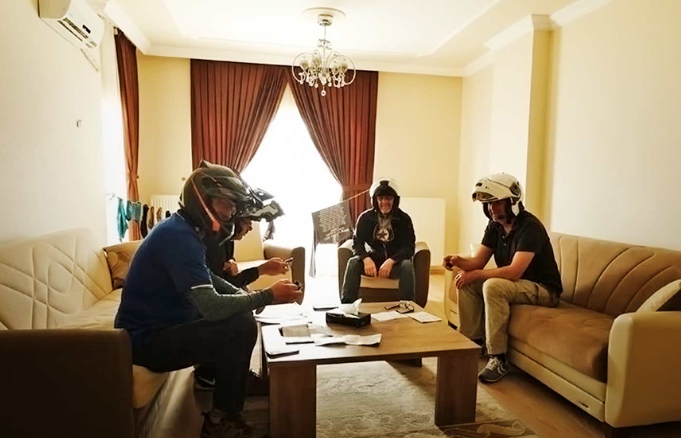 At the front is Gerald who brakes, and to avoid stopping dead, he cannot avoid jumping on the bonnet followed by a tumble on the asphalt. Fortunately, the result is just some purple bruising and a swollen leg. It takes a bit of rest for him to recover, so we decide to do a little shopping and do some laundry. On the seventh day, we go straight to Trabzon but only after we have visited the BMW dealer Dynamik Oto to check the damaged motorcycle: fortunately there is nothing irreparable and we can find all the spare parts and can get the bike back on the road. During the 3 rest days we do lots of shopping, have long breakfasts, take walks along the beach, have dinners at the restaurant, sitting in the barber’s shop and even trying our hands at some DIY while building a mosquito net all by ourselves!