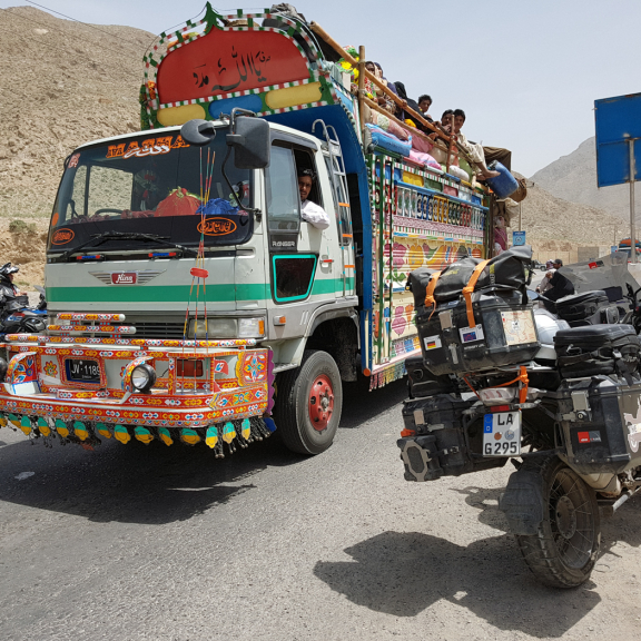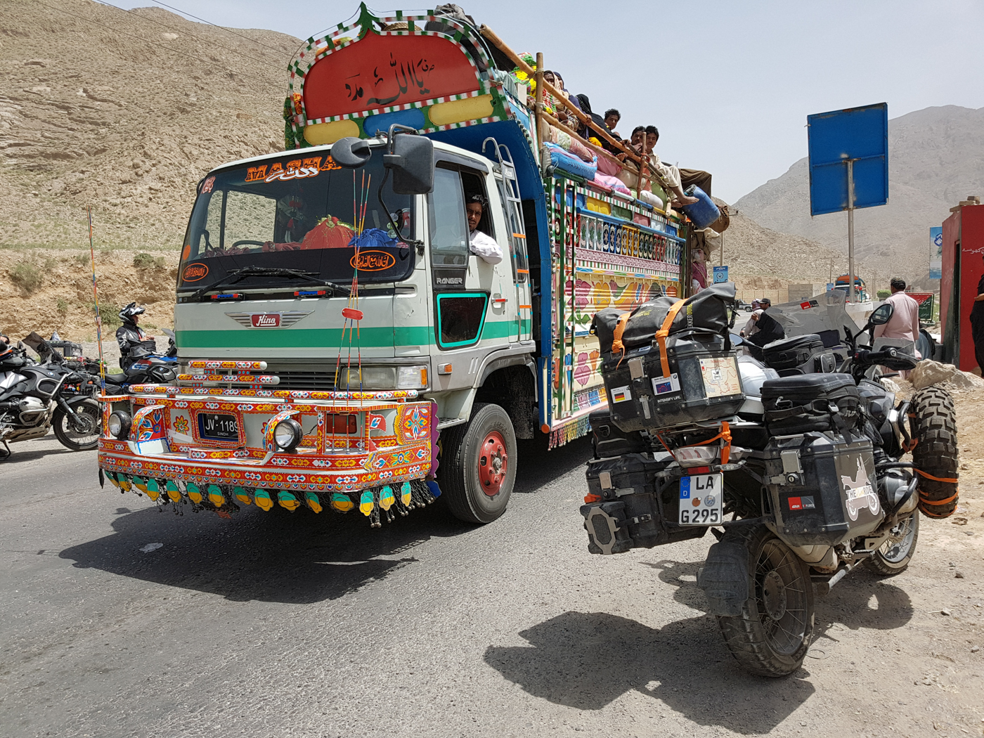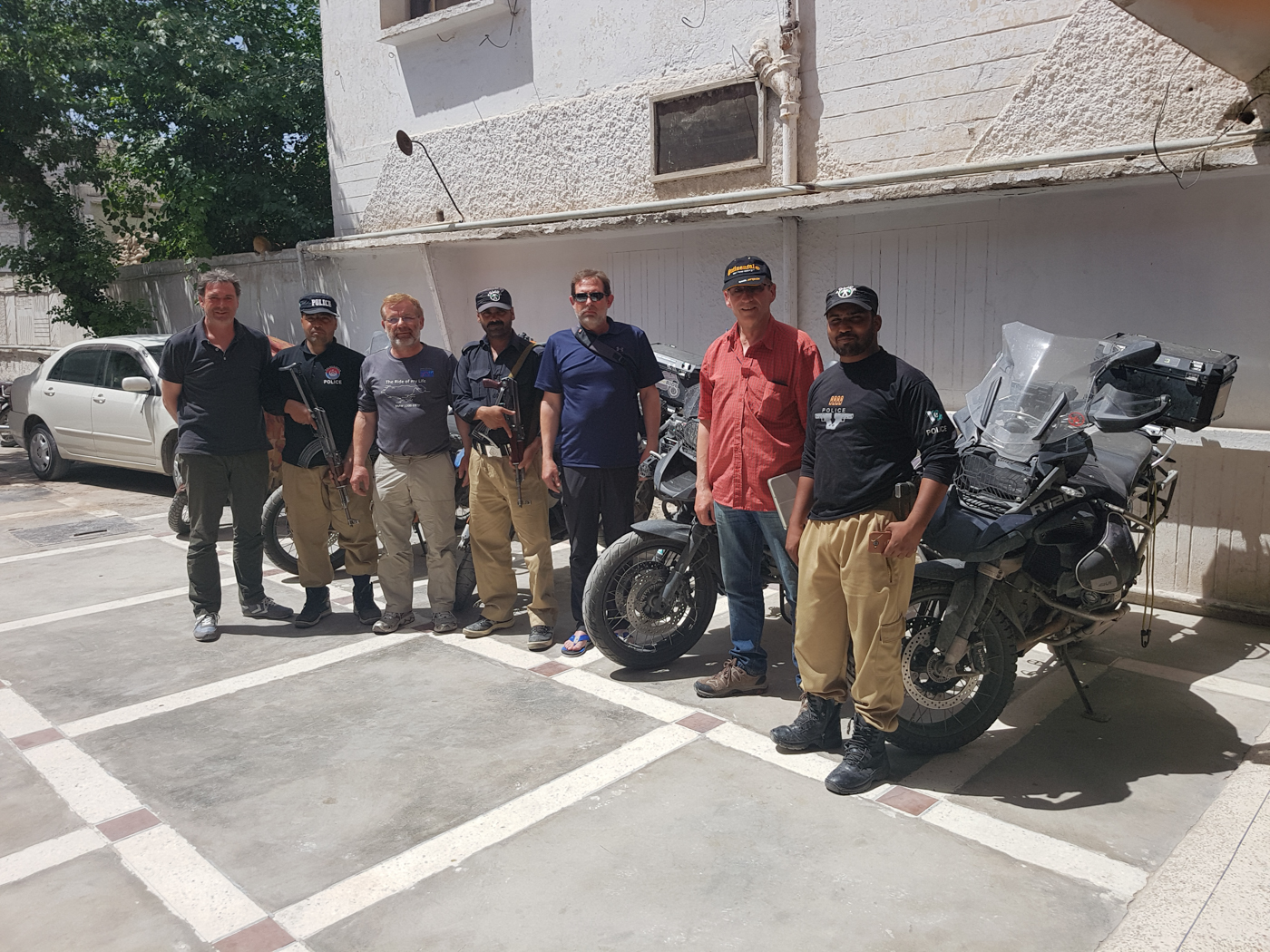 The next morning, accompanied by a police escort from Balochistan the group travelled along the Afghan border towards Quetta and several heavily armed policemen were keeping a close eye on the four riders. Petrol stations were secured on all sides. The group could not leave their hotel without police protection. During the five day trip to Lahore, the four riders were detained 41 times by police controls.