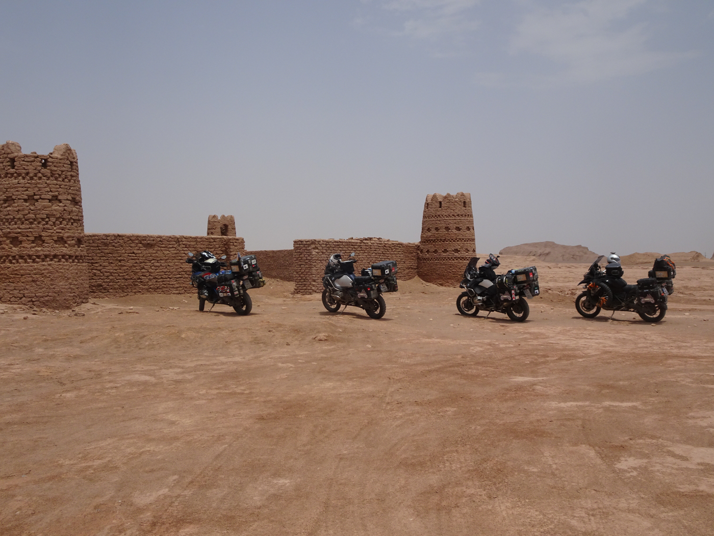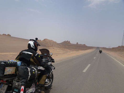 After sightseeing in Tehran and Isfahan, the four gentlemen headed eastwards to the hottest desert in the world, the Dasht-e Lut where the highest temperature ever recorded was 71.4 degrees! Everyone was carrying six litres of water. Whilst crossing the desert on a 300km long tarmac road, the temperature hit 45 degrees Celsius!