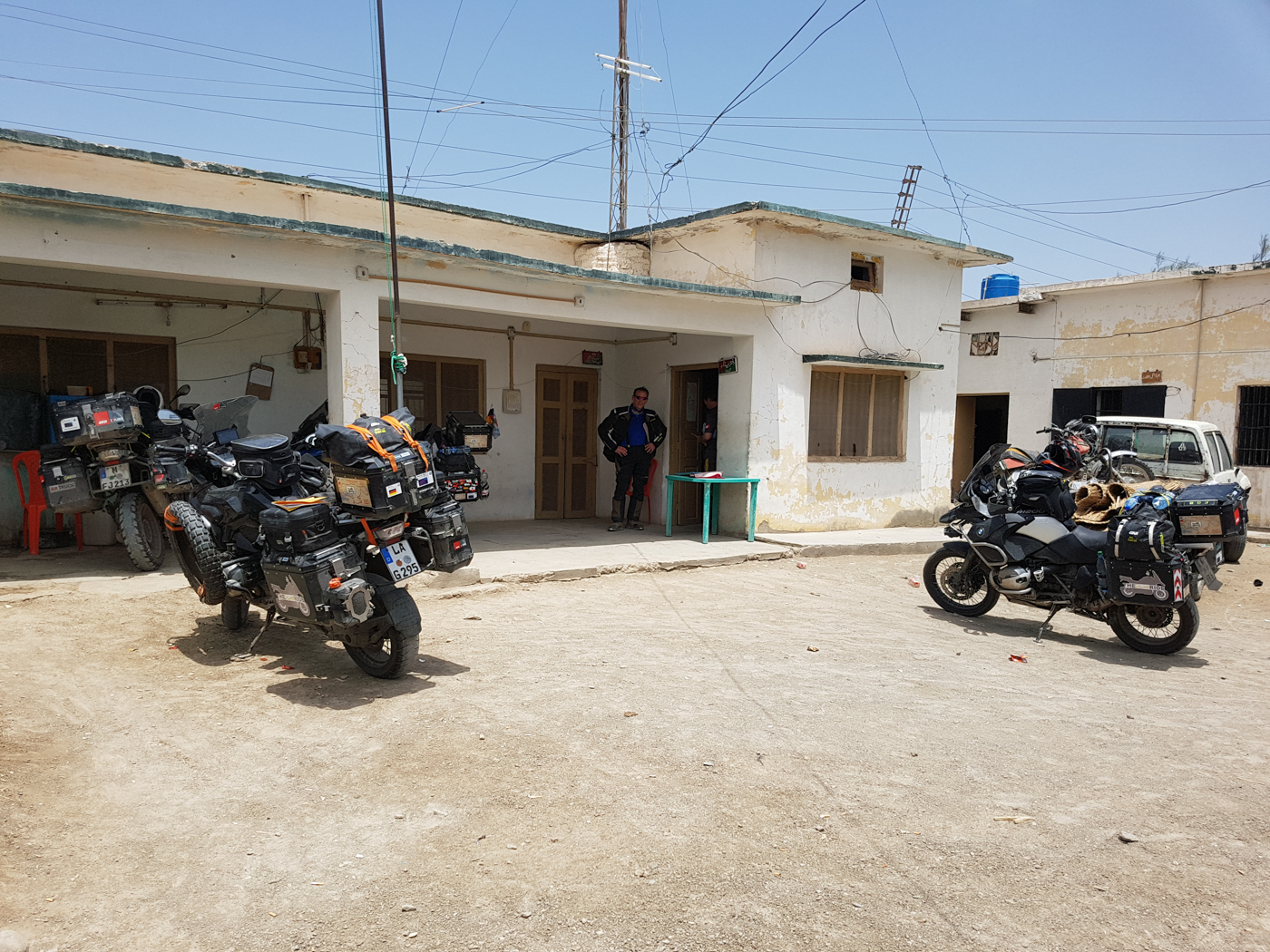 In Taftan the group crossed the border into Pakistan but were intercepted by the police as they were not permitted to ride unescorted and they were required to spend a night in the local police station where there were no beds and no showers!
