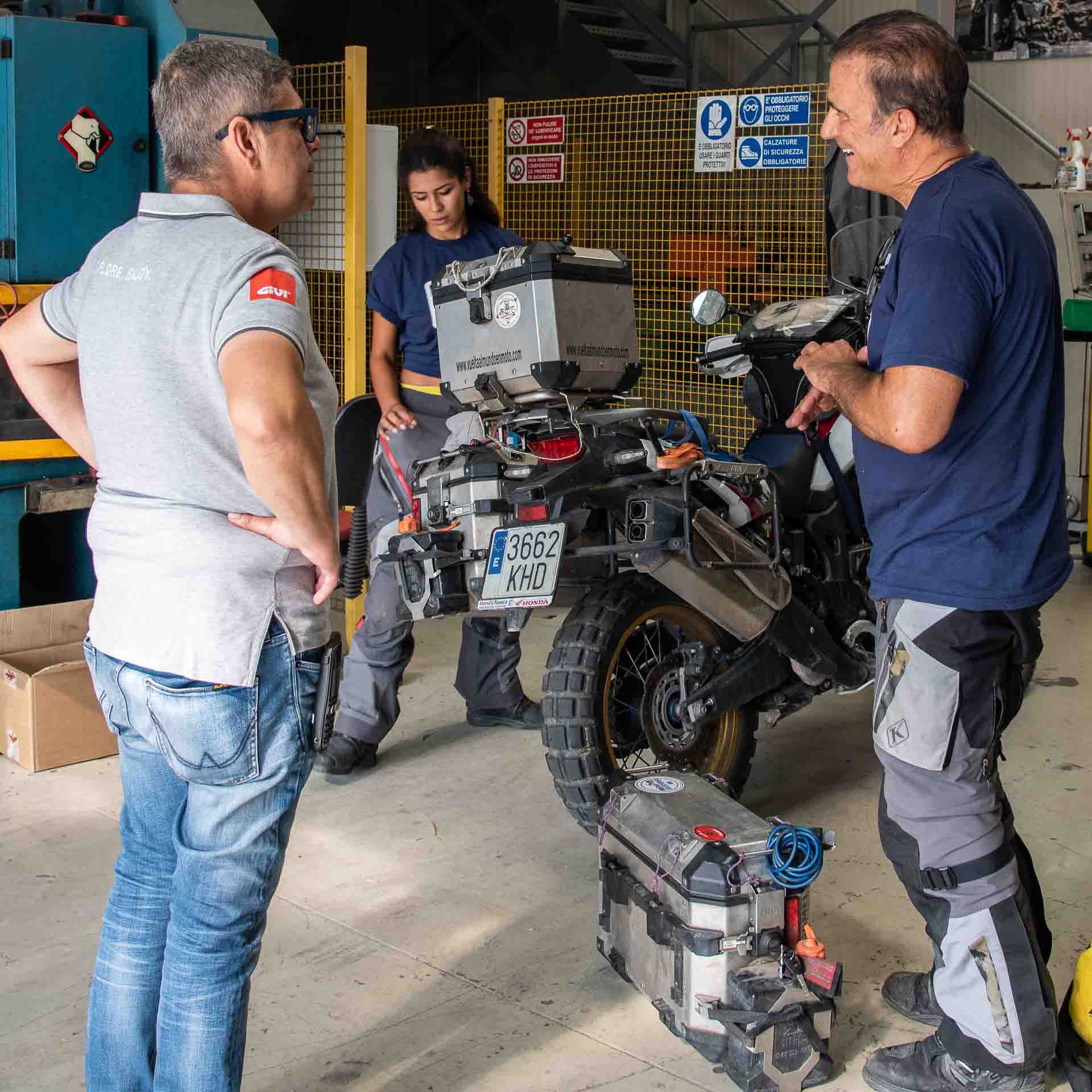 That support from the company was very important. They replaced Vicente’s damaged cases with identical, new ones, while my cases were still in incredibly good shape despite the many falls, and only needed a little maintenance. They gave us everything we needed and we knew we could count on the full support of GIVI and its team. They are all motorcycle lovers, from the owner to the warehouse worker, an excellent company made up of motorcycle enthusiasts.