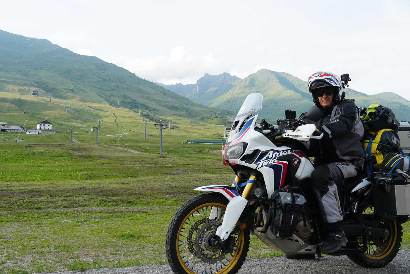 Having travelled Tunisia and been stopped at the border with Libya, we took another ferry to Italy. My cases were damaged, not only due to impacts and crashes but also the excessive load, seeing as both of the GIVI Outback aluminium cases we had were loaded with more than 20 kg of kit. We needed to repair them and, seeing as we were in Italy, we got in touch with the GIVI general headquarters in Brescia, which was actually on our way as we headed towards Switzerland.