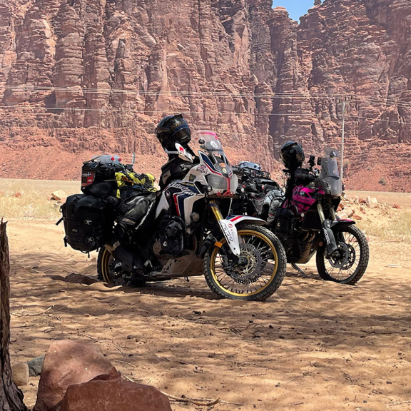 Once again we entered Saudi Arabia to head north to Jordan, more than 2,000 km of pure desert with temperatures of up to 47 degrees, which forced us to drive at night and early in the morning. The heat was hellish and it was a struggle to see who could hold out more, our bikes or us.