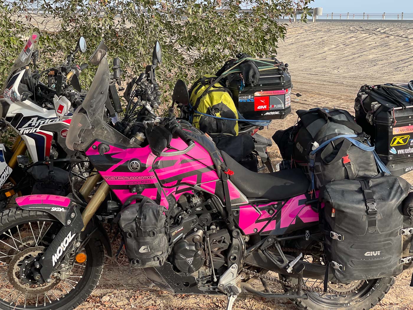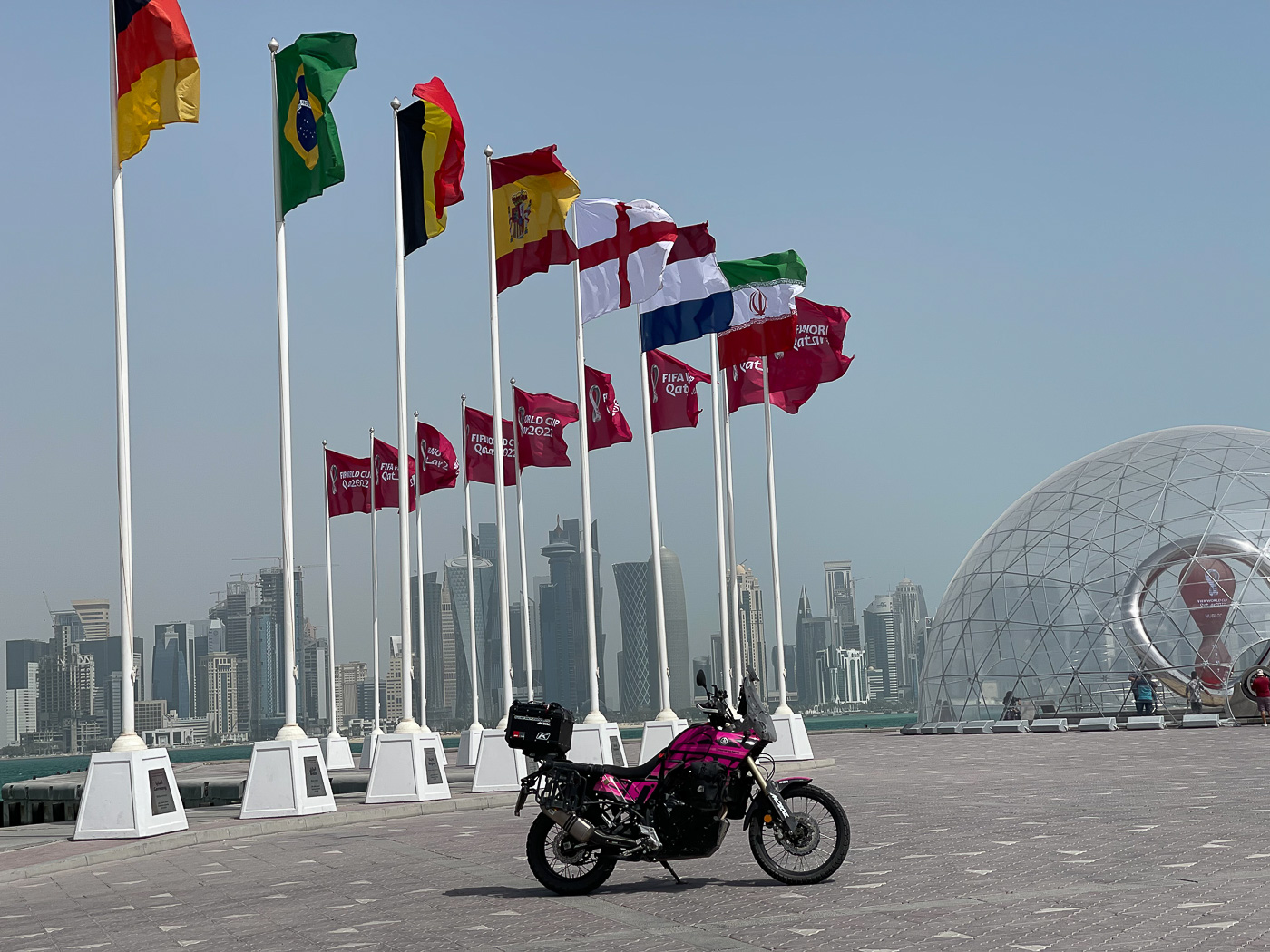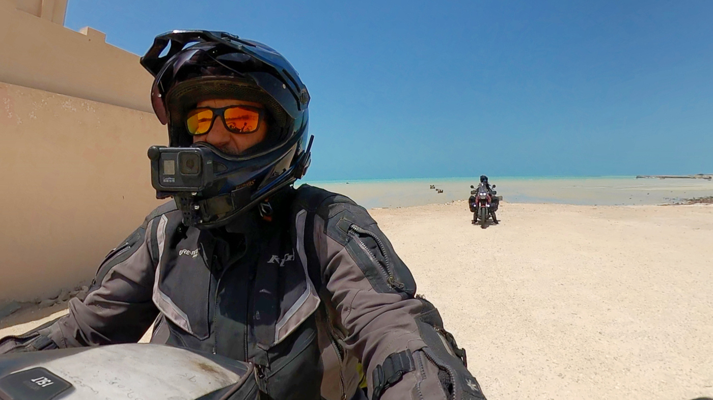 After quite some time on the border and almost dark we entered Qatar makes a terrible wind and using windbreak the bikes we could camp on the sand of the desert.