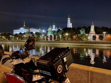 I have already visited St. Petersburg many times by motorcycle and by car, so at 6 pm I decided that it was time to return home and in 8 hours I reached Moscow along the highway, stopping only for rest and refueling. It was fascinating to see that after 10 o’clock in the evening it was getting dark ahead of me in the direction of Moscow, but when I looked back in the rear-view mirrors, there was a much brighter sky in the direction of St. Petersburg.