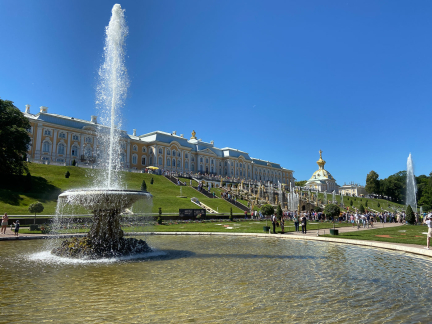 By 7 o’clock in the morning the sun was shining brightly and my tent warmed up, so I woke up and immediately went for a walk along the sandy beach. Spent the morning here, swimming and sunbathing. I also met a group of local young people who also rested here with tents not far from me. They talked about many interesting places in the Leningrad Region, which I will definitely visit in the future. Then I packed all my things in Givi aluminum cases which are very large and sealed. Everything including tent and sleeping bag fits inside and there is no need to tie anything outside. This is very convenient. The whole image of Peterhof has been shaped over several centuries, allowing us in the 21st century to immerse ourselves in the atmosphere of Petersburg’s majestic history: take a stroll through Peterhof – the former summer residence of the Tsars, now a state museum-reserve. Here you can admire the varied marble fountain systems and visit the landscape parks and gardens.