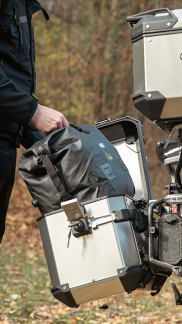 If, on the other hand, you select a set of soft bags either as your main solution or as the finishing touch to a “hard” set-up, heat-sealed models are available to guarantee complete impermeability, while other fabric bags have a waterproof inner bag. Non-waterproof fabric models may, in any case, feature a waterproof external covering.
